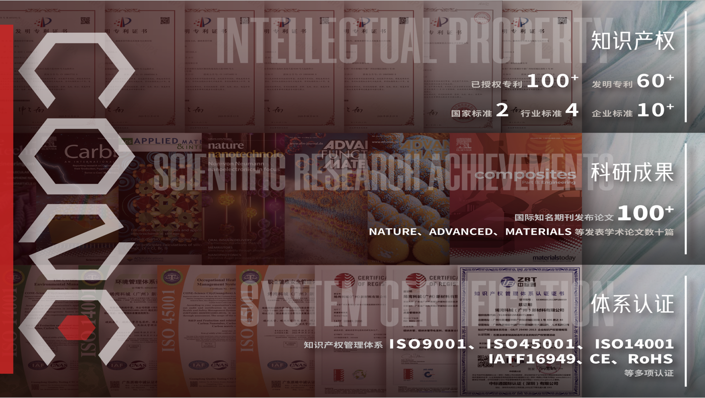 烯灣已布局核心專利200余項(xiàng),在相關(guān)領(lǐng)域頂級期刊發(fā)表學(xué)術(shù)論文100余篇。通過了環(huán)境管理體系(ISO 14001)、職業(yè)健康安全管理體系(ISO 45001)、質(zhì)量管理體系(ISO 9001、IATF 16949)、知識產(chǎn)權(quán)管理體系(GB/T 29490-2013)、歐盟CE/RoHS等體系認(rèn)證。